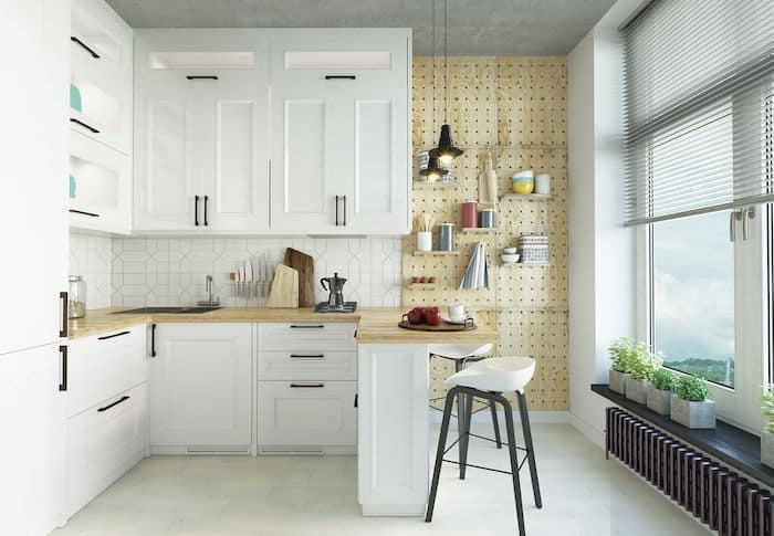 Configurez une petite cuisine fermée dans le style scandinave pour plus de commodité