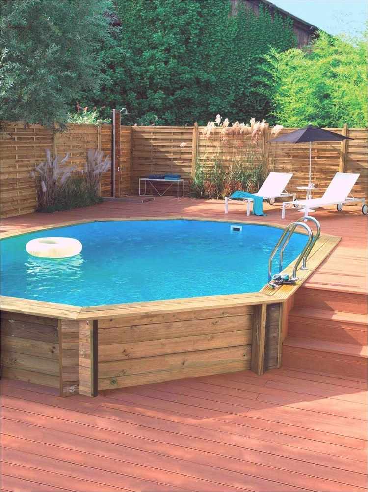 Autre option : recouvrir la piscine de lames de bois. Commencez par fixer les premières lames à la base, puis progressez en les chevauchant. Pour gagner du temps, la pose verticale se révèle souvent plus rapide. L’avantage ? Choisir la largeur, la teinte et la disposition qui conviennent le mieux à votre jardin.