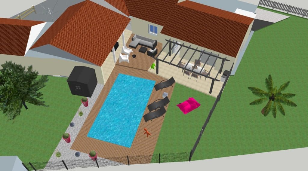 - L’espace disponible autour de la piscine : mesurez, visualisez.