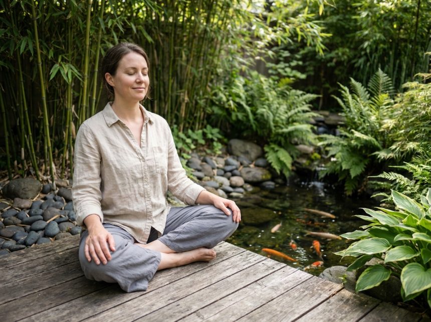 Pour ceux qui recherchent un maximum de sérénité, installer un coin méditation sur une plateforme en bois ou un tapis d’extérieur, à l’abri d’une haie ou d’un brise-vue végétal, fait une vraie différence. Près d’un point d’eau, ce petit espace vibre au rythme du ruissellement. On complète l’ensemble par quelques lanternes solaires, une guirlande LED, une lanterne de pierre ou une statue sobre ; jamais plus d’objets qu’il ne faut.