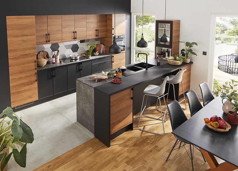 Impossible de parler d’optimisation d’espace en cuisine sans évoquer les rangements. Indispensables, ils apportent également une touche décorative à la pièce. Aujourd’hui, on privilégie les rangements en bois pour accompagner le style tendance. Mieux, ce sont les rangements malins qui ont la cote. Discrets, ils sont intégrés à l’îlot central de la cuisine et ne prennent donc pas d’espace supplémentaire. Si vous avez l’œil, vous remarquerez les rangements malins sur les illustrations de cuisines tendances de 2023. Dans votre cuisine, marquez les espaces de rangement avec des essences de bois différents. Vous pouvez même miser sur de la couleur pour les distinguer et rendre votre cuisine encore plus originale.