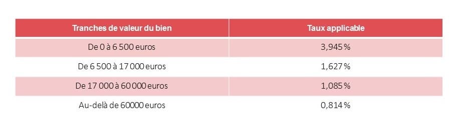 Quels sont les barèmes appliqués selon la valeur du bien ?